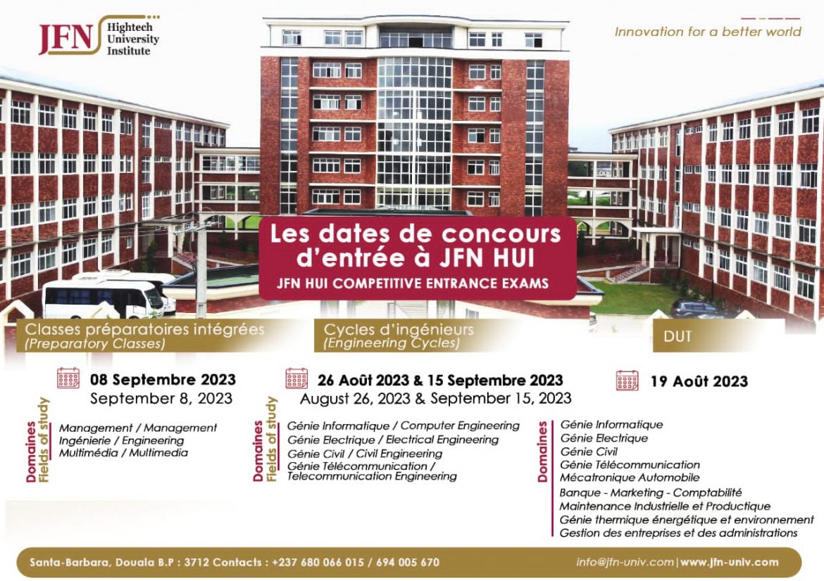 La Jacky Felly Nafack Hight Tech University de Douala ouvre ses portes aux inscriptions pour ses concours en classes préparatoires intégrées. Des filières en vue portent sur le Management, l’Ingénierie, Multimédia. Le tout, en section anglophone et francophone.