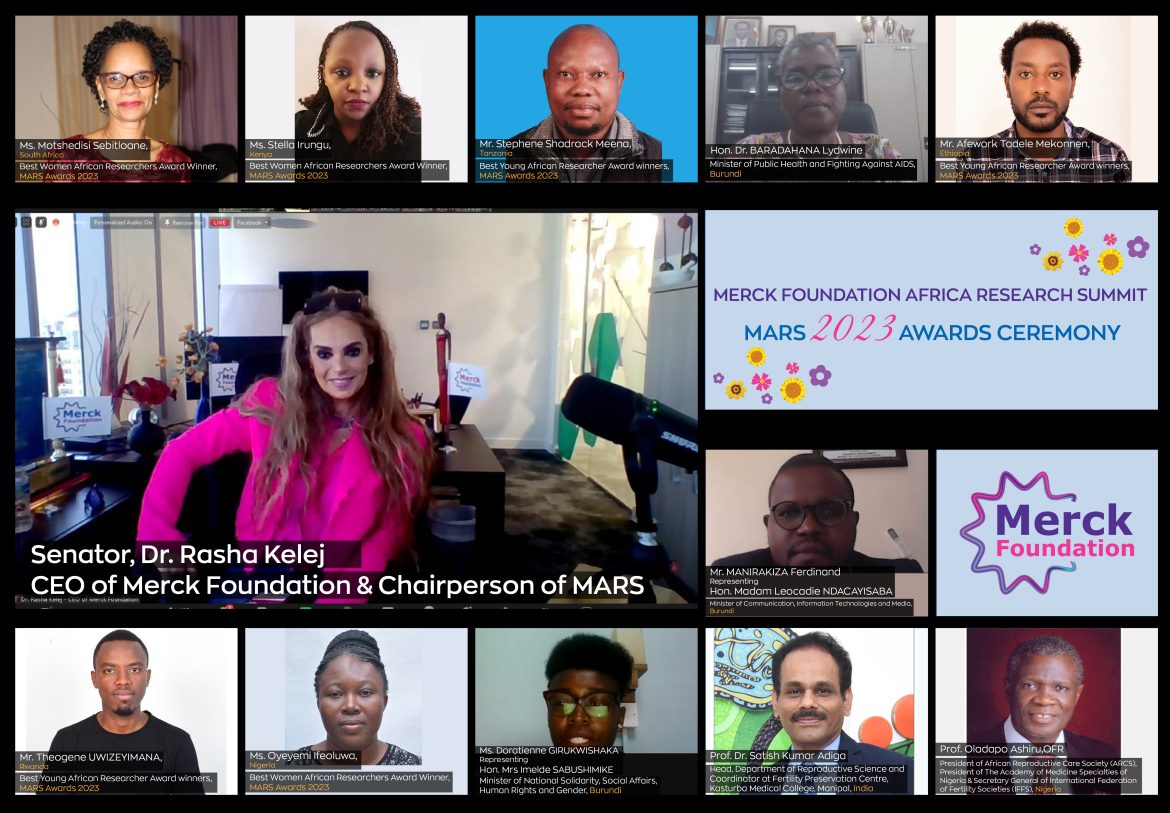 CEO de la Fondation Merck (www.Merck-Foundation.com), Sénatrice Dr. Rasha Kelej et le Comité Scientifique ont annoncé et reconnu les gagnants du Sommet de Recherche en Afrique de la Fondation Merck – Prix MARS 2023, 6 chercheurs de 6 pays africains différents récompensés dans deux catégories – Meilleures Chercheuses Africaines et Meilleures Jeunes Chercheurs Africains ; La Cérémonie de Remise des Prix MARS a réuni les Ministres Africains de la Santé, de la Technologie, de l’Information et de la Technologie, des Affaires Sociales, des Droits des Femmes et du Genre, du Développement Communautaire et de la Protection Sociale ; Les Prix MARS 2023 du Sommet de Recherche en Afrique de la Fondation Merck ont été décernés en partenariat avec la Commission de Recherche Technique et Scientifique de l’Union Africaine, la Fédération Internationale des Sociétés de Fertilité -IFFS, la Société Africaine des Soins de Reproduction – ARCS et l’Université de Manipal, Inde.