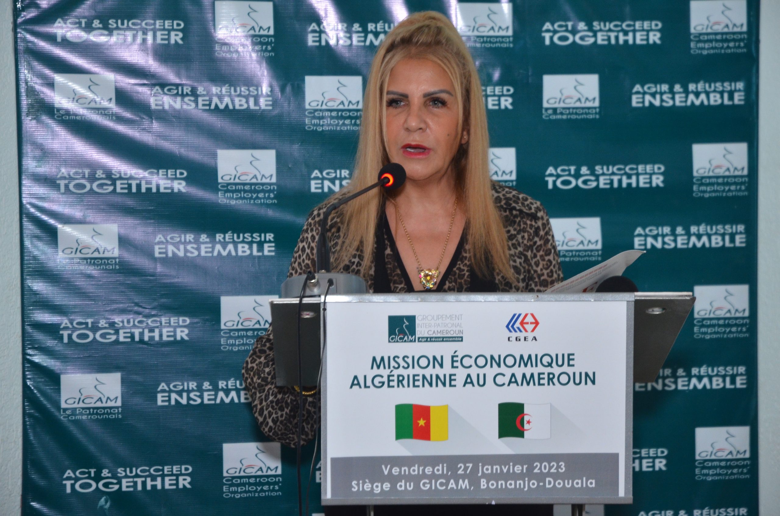 Les créateurs de richesse algériens mesurent l’immense étendue des opportunités au Cameroun. Ce qui a conduit ici une délégation d’hommes d’affaires algériens au Gicam le 27 janvier 2023. « Nous sommes venus avec presque 40 hommes d’affaires, il y a des entreprises qui représentent 18 filiales qui veulent investir dans l’agroalimentaire, le café, cacao le coton et le bois et d’autres activités », indique Saïda Neghza, présidente de la Confédération générale des entreprises algériennes (CGEA). « Prochainement nous allons revenir avec une autre grande délégation, des patrons qui veulent vraiment investir au Cameroun parce que votre pays, vous avez une richesse vue nulle part ailleurs. C’est dommage pour l’Afrique. Normalement l’Algérie, c’est 4h de vol pour y arriver. Nous sommes entrain d’acheter le coton et le bois, je pense c’est le moment de travailler ensemble au nom du business Africa, une plateforme qui regroupe 54 pays, j’en suis la présidente, notre siège est au Kenya, mon rôle c’est de travailler pour toute l’Afrique. Nous avons fait le tour du monde pour arriver au Cameroun, c’est pour y investir, Dieu merci, nous avons la caution de deux présidents, du Cameroun et celui d’Algérie » souligne la patronne des patrons algériens.