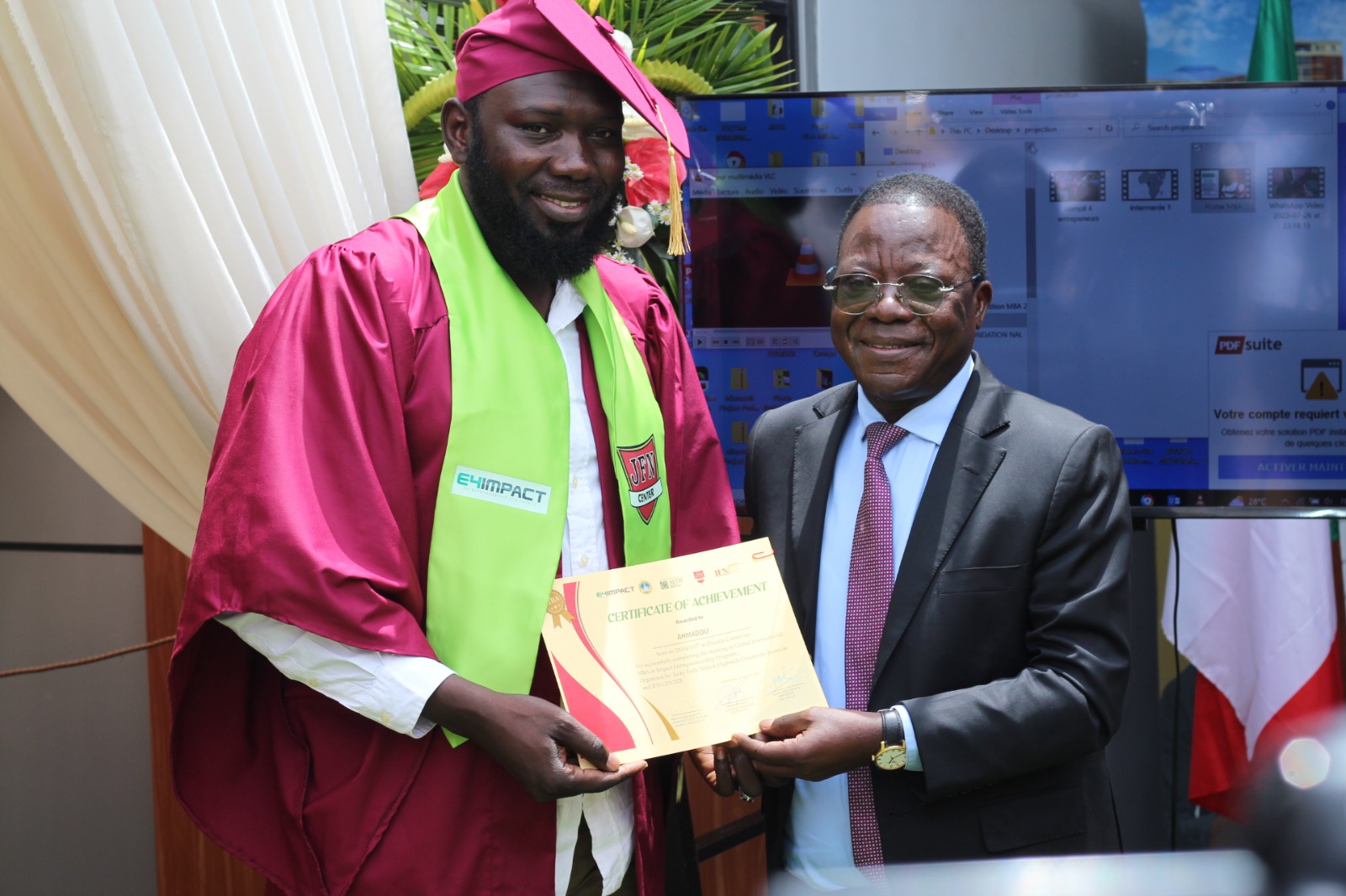 Alphonse Nafack, le président de JFN Group, ne voile pas sa satisfaction au moment de mettre sur le terrain de la création des richesses des acteurs capés. « C’est avec grand plaisir que je prends la parole à cette cérémonie de la remise des diplômes du Global MBA in Impact Entrepreneurship. Une première pour le Groupe JFN que nous avons créé en 2019 et qui aujourd’hui est fier de faire partie, aux côtés de prestigieuses universités africaines, de la E4Impact African University Alliance, dont la vision partagée est « d’être la plus grande communauté panafricaine d’universités reconnue internationalement pour promouvoir l’entrepreneuriat social et environnemental à fort impact sur le continent africain et au-delà. »