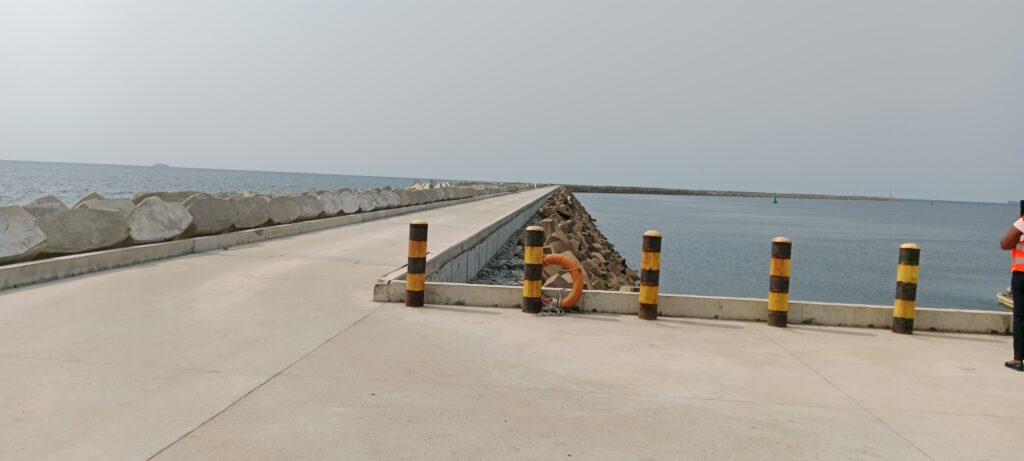 • 2 terminaux onshore : 1 Terminal à Conteneurs (TAC) de 350 mètres linéaires de quai fondé à -16 m avec une capacité d’environ 350 000 EVP et 1 Terminal Polyvalent (TP) de 265 mètres linéaires de quai de quai fondé à -15,5m ayant une capacité d’environ 1,2 millions de tonnes.