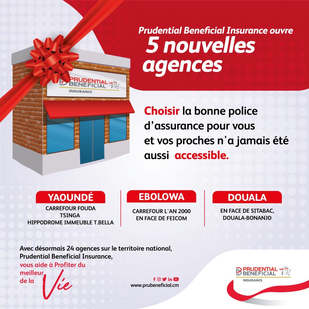 Cette agence sera ouverte le 13 décembre 2022, tandis que les clients d’Ebolowa peuvent, depuis le 8décembre 2022, profiter de la toute première agence de Prudential Beneficial à L’An 2000, en face de FEICOM. « Prudential Beneficial Insurance disposera désormais d’un total de 24 agences sur le territoire national, confirmant ainsi sa position de premier fournisseur d’assurance au Cameroun », souligne l’entreprise.