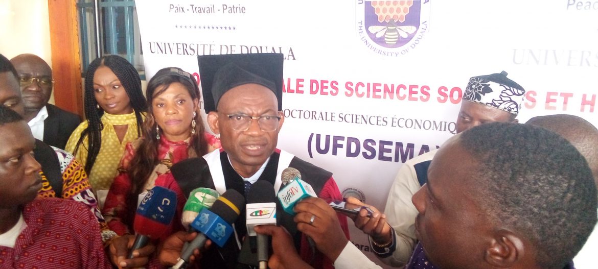 « Vous êtes désormais Dr Edou Alo’o Cyrill », a tranché, le 4 août à Douala, le Professeur Claude Bekolo, doyen de la faculté des sciences économiques et de gestion de l’université publique de la capitale économique. Une fin heureuse. Sanctionnée par la mention « très honorable » après six heures d’horloge. Un long temps qui n’a pas douché les attentes de nombreux invités, à l’instar de Samuel Dieudonné Ivaha Diboua, gouverneur du Littoral, sans oublier des collaborateurs et autres patrons d’entreprises publiques et privées qui n’ont pas voulu louper ce moment de sciences de très haut niveau.