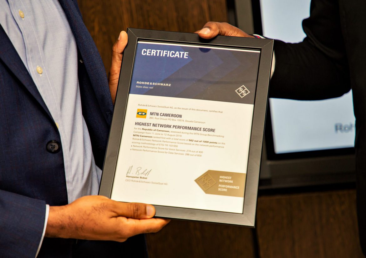 Le « Prix de la meilleure performance de réseau » a été officiellement remis à la direction de MTN Cameroon au cours d’une cérémonie solennelle au siège du géant sud africain des télécoms à Douala, le 27 janvier 2020. Cette reconnaissance a été décernée à la suite de tests effectués au Cameroun au cours du 4e trimestre 2019. L’étude menée à cet effet a porté sur un nombre total de 20 000 appels et des évaluations de la vitesse de l’internet sur 9 000 km à travers le territoire national.