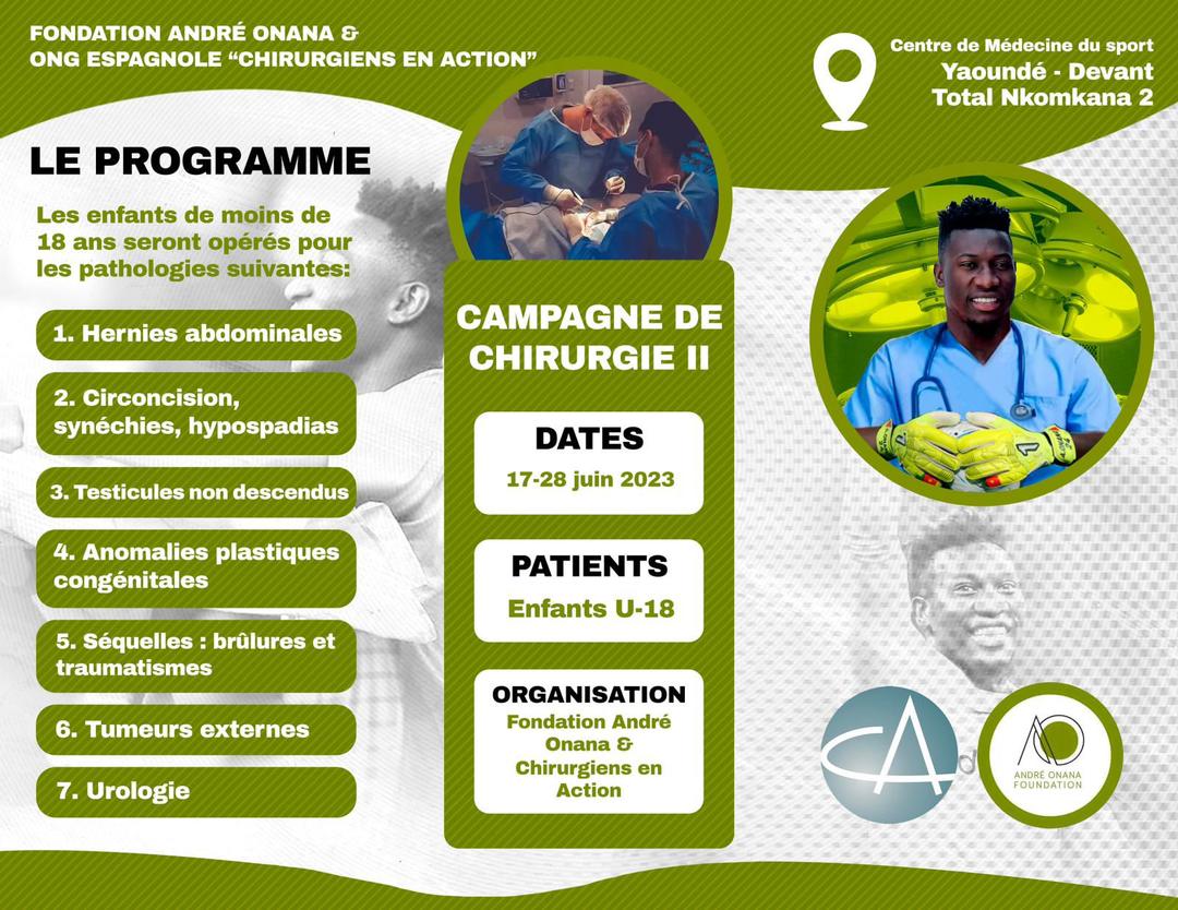 Dans le cadre du développement de ses activités la Fondation André ONANA et l’ONG Espagnole Chirurgiens en Action organisent la 2ème édition de la Campagne de Chirurgie à Yaoundé au Centre de Médecine du Sport du 17 au 28 Juin 2023.